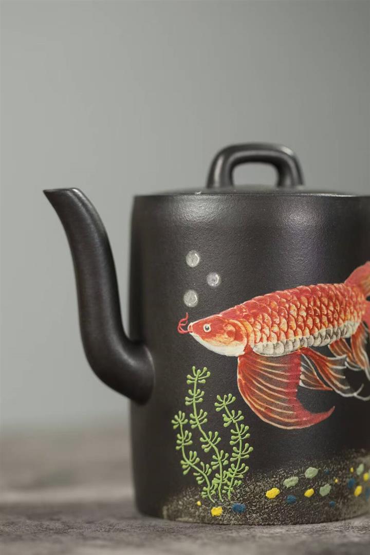 原礦墨綠泥琺瑯彩報春茶壺POT7017