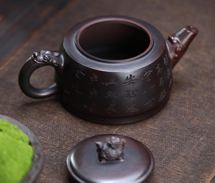 【泥料特點】砂土氣重,似淳實農民,日久使用,漸露鋒芒,養成變化,溫潤莊重。紫砂是壹種雙重氣孔結構的多孔性材質,氣孔微細,密度高。用紫砂壺沏茶,不失原味,且香不渙散,得茶之真香真味。紫砂使用越久,壺身色澤越發光亮照人,氣韻溫雅。紫砂壺長久使用器身會因撫摸擦拭,變得越發溫潤光澤。