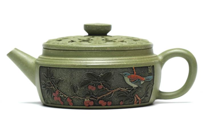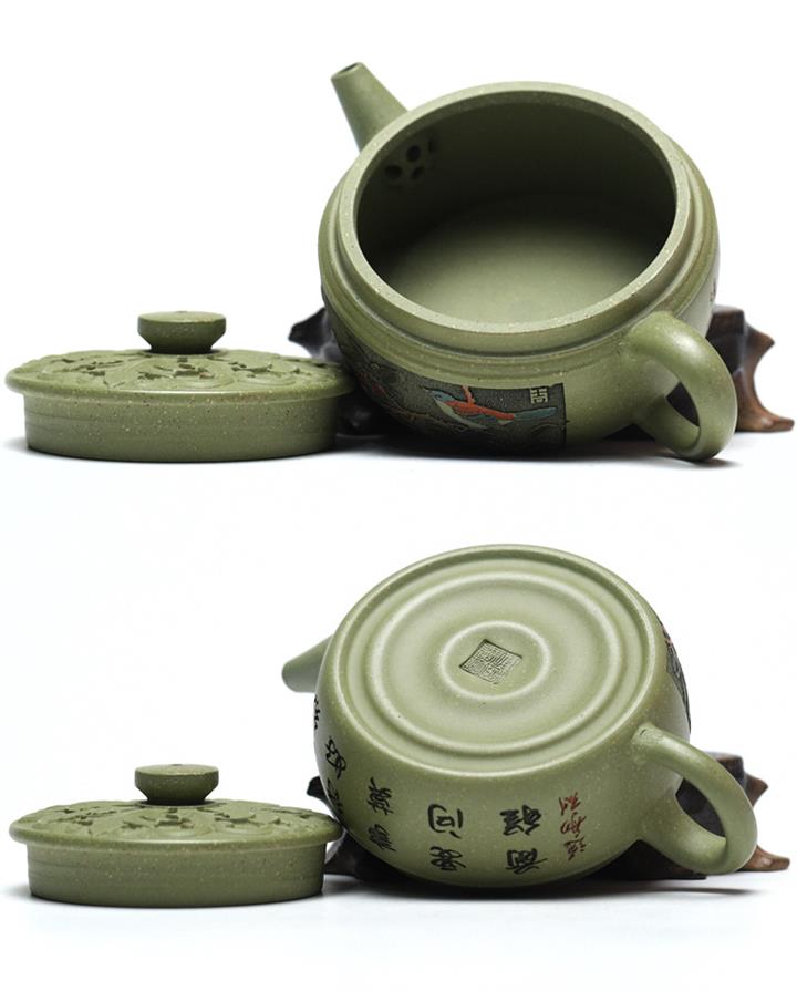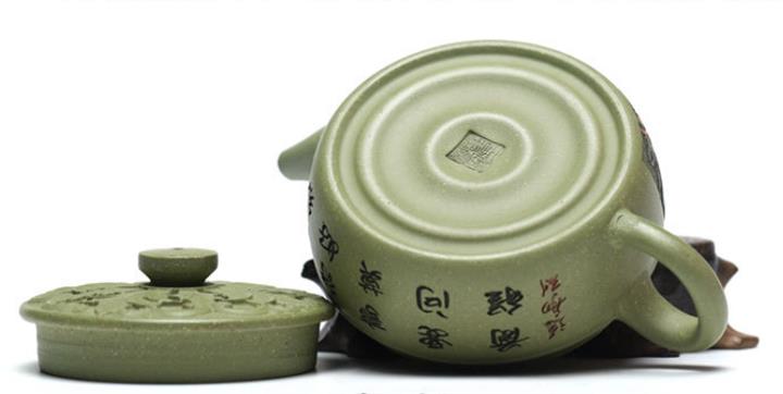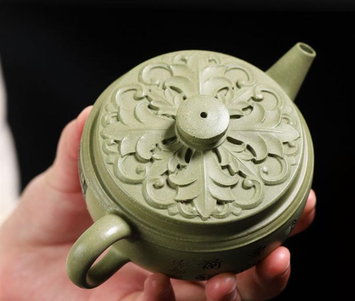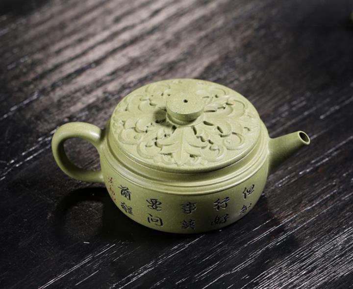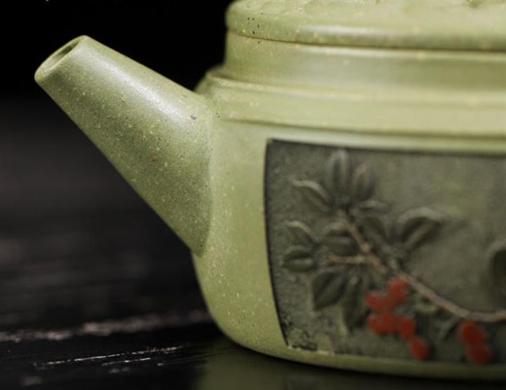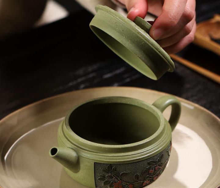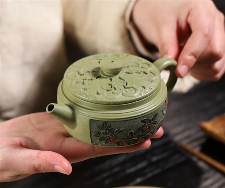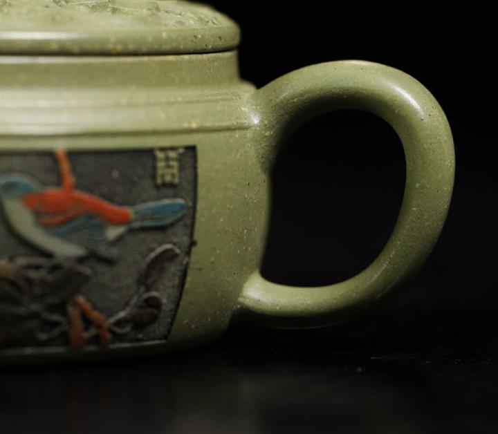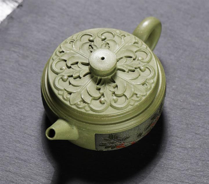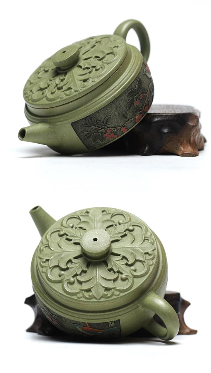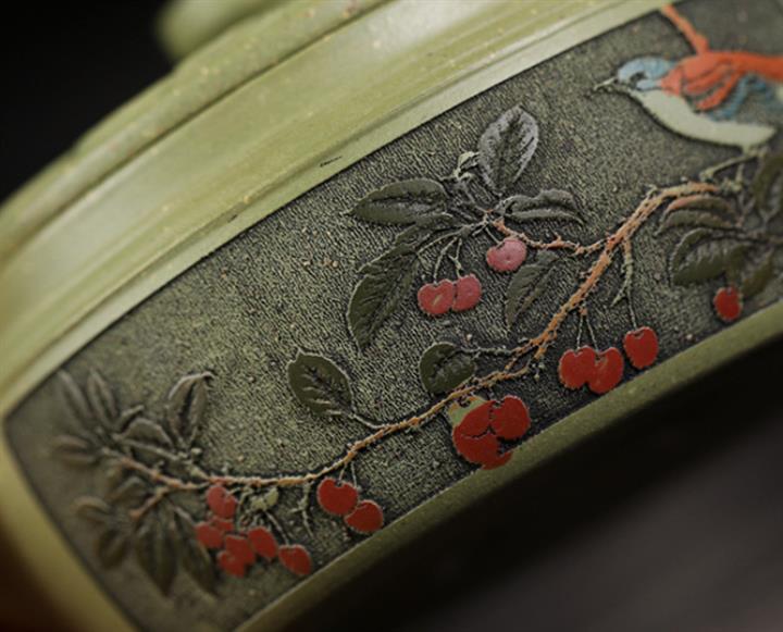 200cc原礦豆青砂櫻枝載福泡茶壺POT9783