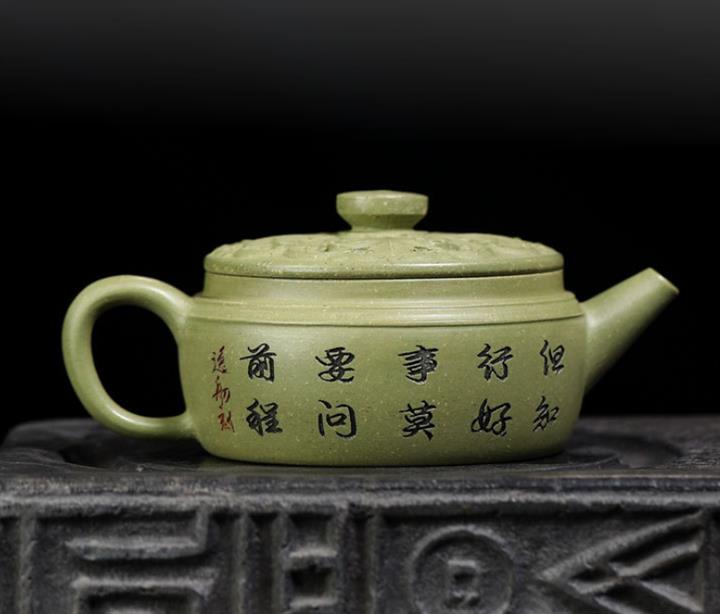原礦黑金砂手工蛇紋鎏金刻繪龍燈茶壺POT6774