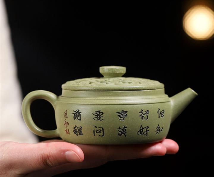 【作品介紹】此款壺形線條流暢,壺把,壺嘴,壺身壹氣呵成栩栩如生,是收藏把玩的好壺,泥料色澤古樸典雅,日久使用,漸露鋒芒,養成變化快,溫潤莊重,用其泡茶,使用的年代久,壺身就溫潤,泡出來的茶湯也就醇郁芳馨。