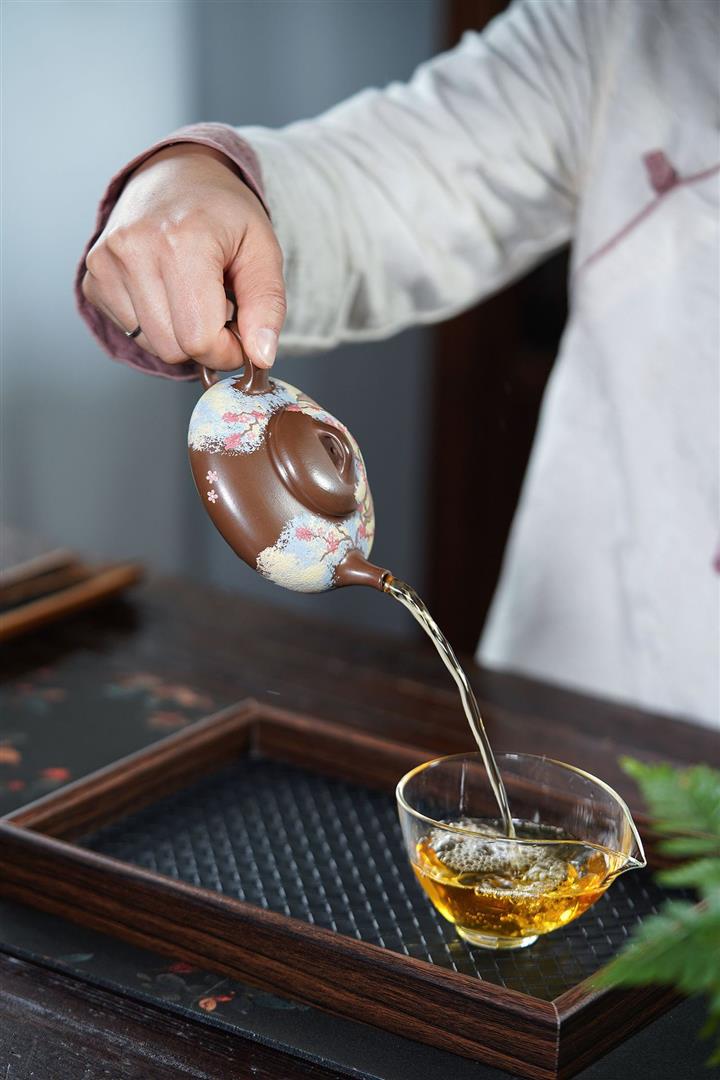 【泥料特點】砂土氣重,似淳實農民,日久使用,漸露鋒芒,養成變化,溫潤莊重。紫砂是壹種雙重氣孔結構的多孔性材質,氣孔微細,密度高。用紫砂壺沏茶,不失原味,且香不渙散,得茶之真香真味。紫砂使用越久,壺身色澤越發光亮照人,氣韻溫雅。紫砂壺長久使用器身會因撫摸擦拭,變得越發溫潤光澤。