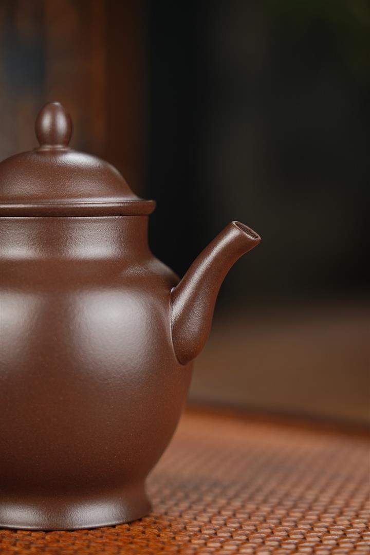 【作品介紹】此款壺形線條流暢,壺把,壺嘴,壺身壹氣呵成栩栩如生,是收藏把玩的好壺,泥料色澤古樸典雅,日久使用,漸露鋒芒,養成變化快,溫潤莊重,用其泡茶,使用的年代久,壺身就溫潤,泡出來的茶湯也就醇郁芳馨。