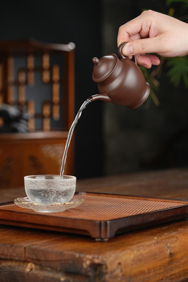 【泥料特點】砂土氣重,似淳實農民,日久使用,漸露鋒芒,養成變化,溫潤莊重。紫砂是壹種雙重氣孔結構的多孔性材質,氣孔微細,密度高。用紫砂壺沏茶,不失原味,且香不渙散,得茶之真香真味。紫砂使用越久,壺身色澤越發光亮照人,氣韻溫雅。紫砂壺長久使用器身會因撫摸擦拭,變得越發溫潤光澤。