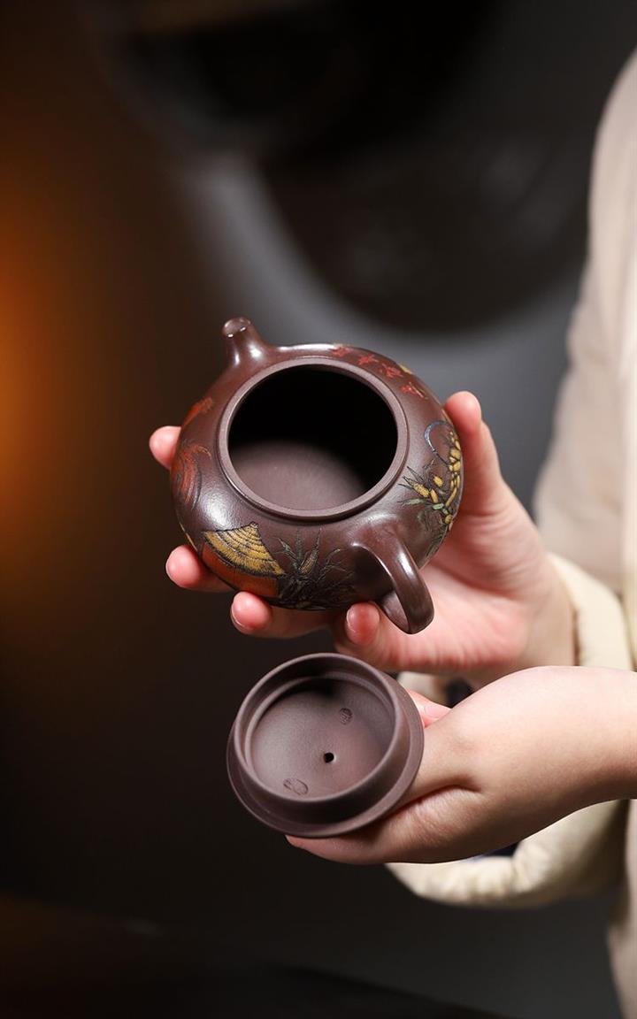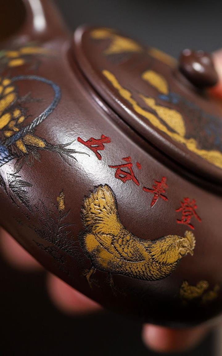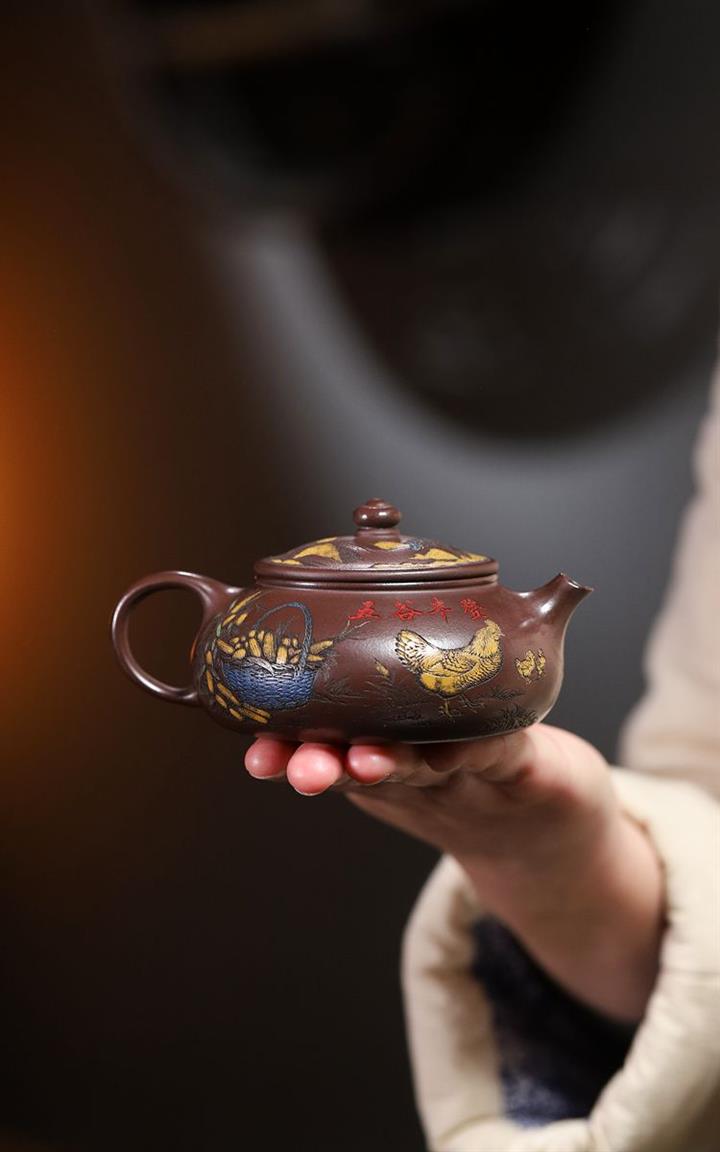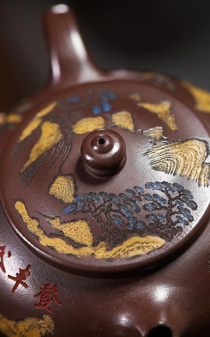 170cc原礦紫泥刻繪寒江泡茶壺POT9815