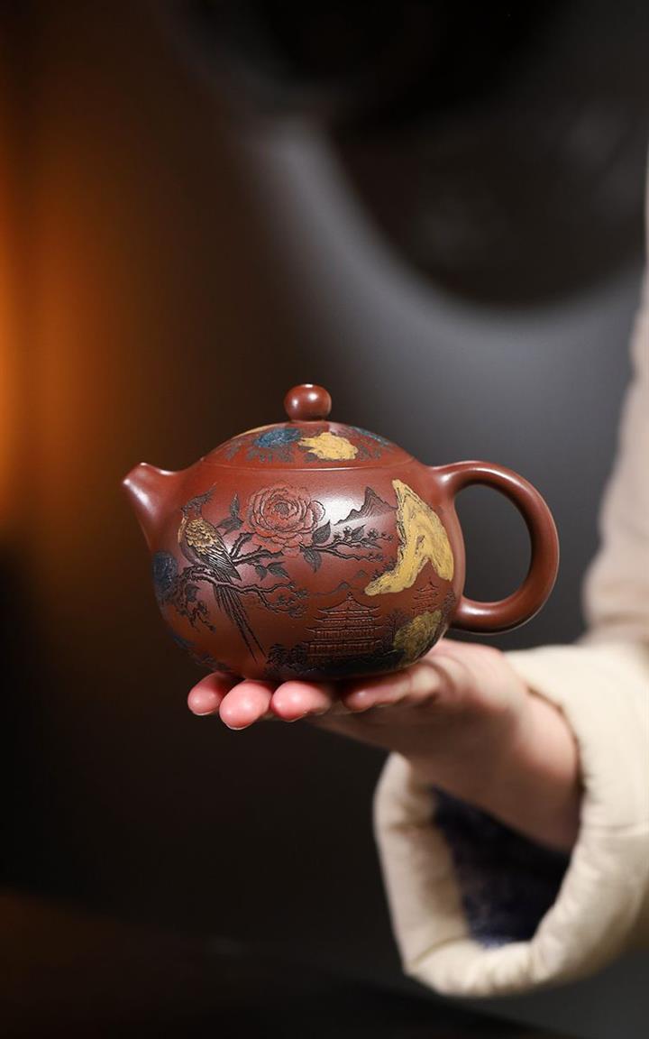 【作品介紹】此款壺形線條流暢,壺把,壺嘴,壺身壹氣呵成栩栩如生,是收藏把玩的好壺,泥料色澤古樸典雅,日久使用,漸露鋒芒,養成變化快,溫潤莊重,用其泡茶,使用的年代久,壺身就溫潤,泡出來的茶湯也就醇郁芳馨。