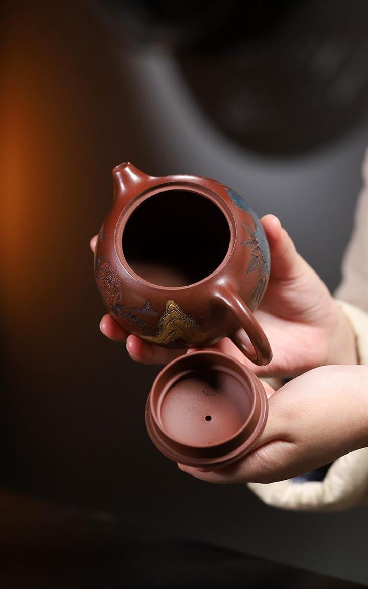 紫泥山水漢瓦紫砂壺POT5152