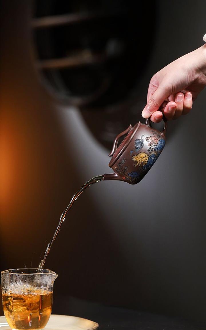 手工紫泥泥繪鳥語花香泡茶壺POT3951