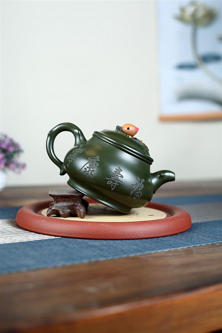 340cc原礦綠泥蟠桃壺泡茶壺POT9820