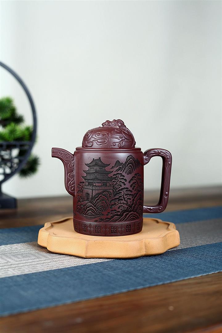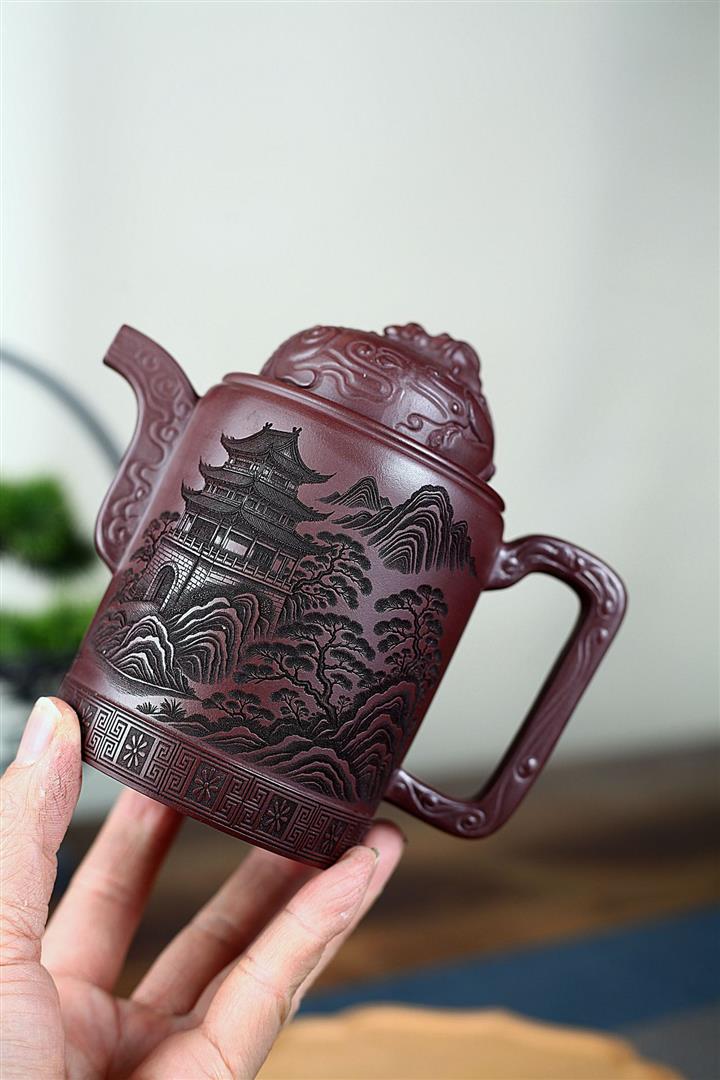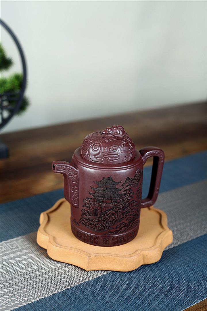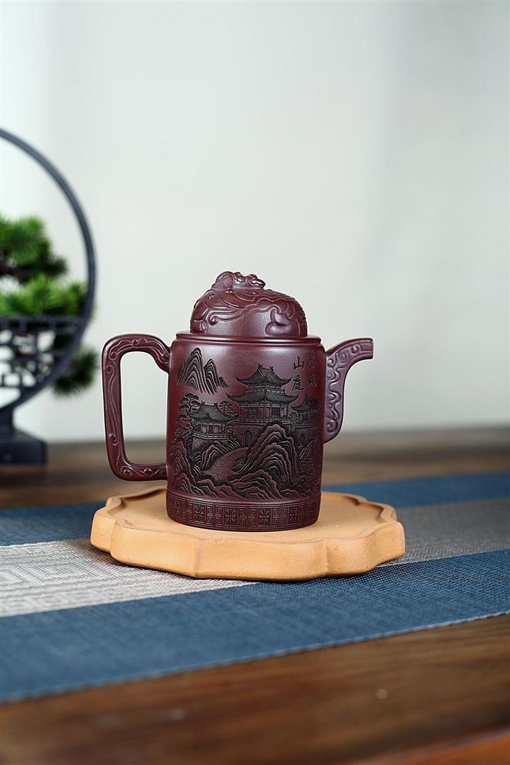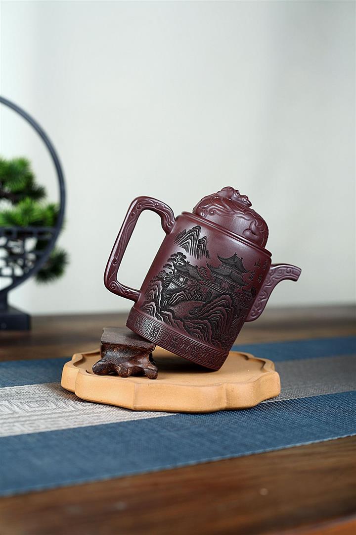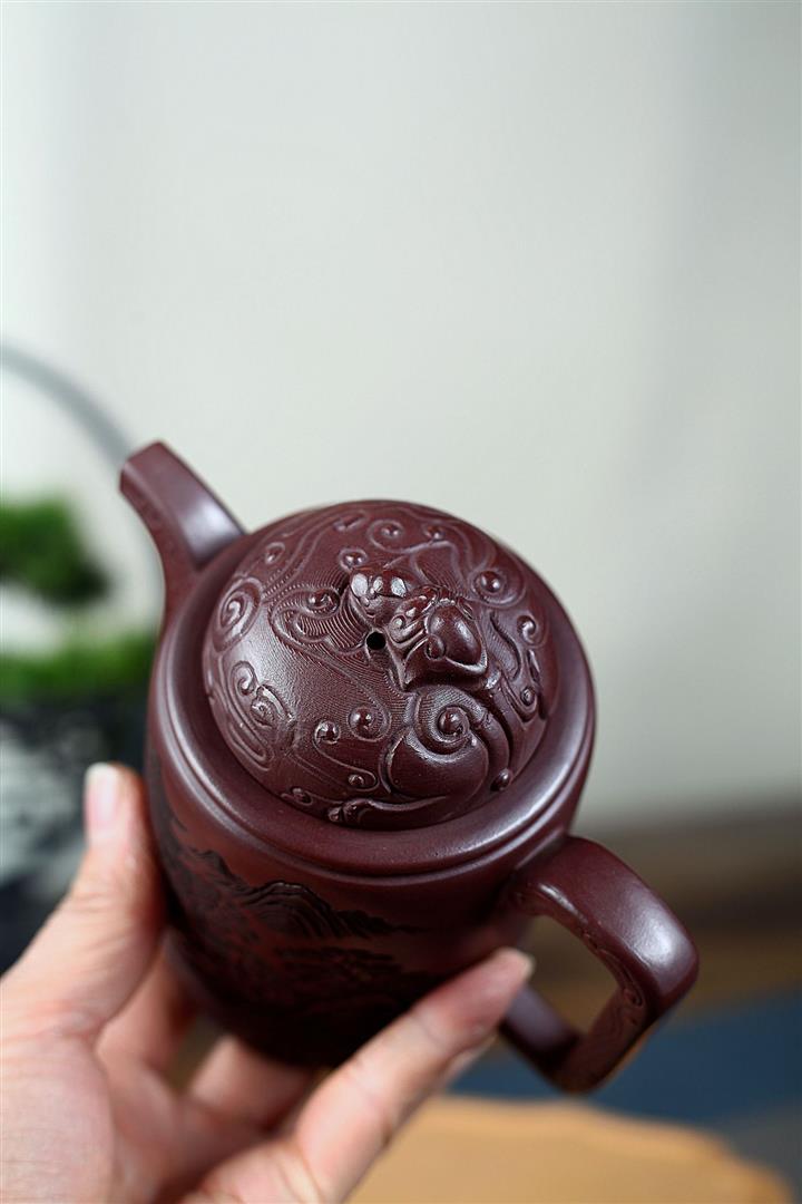 400cc原礦紫泥暮雨山庭龍璽汲直泡茶壺POT9821