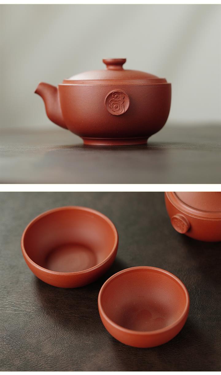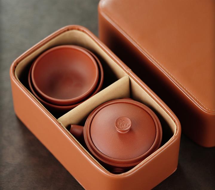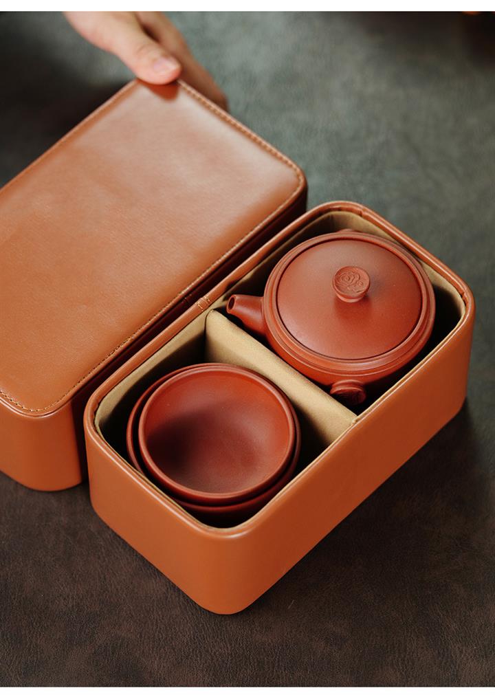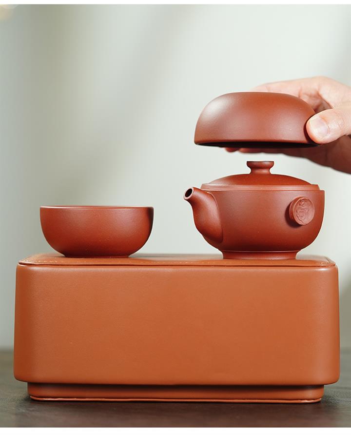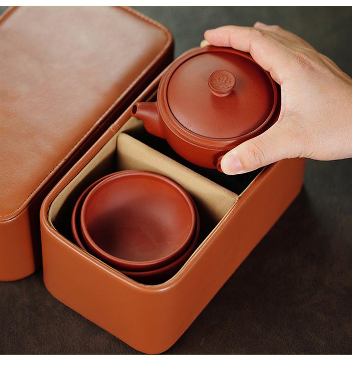 150cc原礦青水泥祥雲繞腕壺小皮茶具收納包POT9829