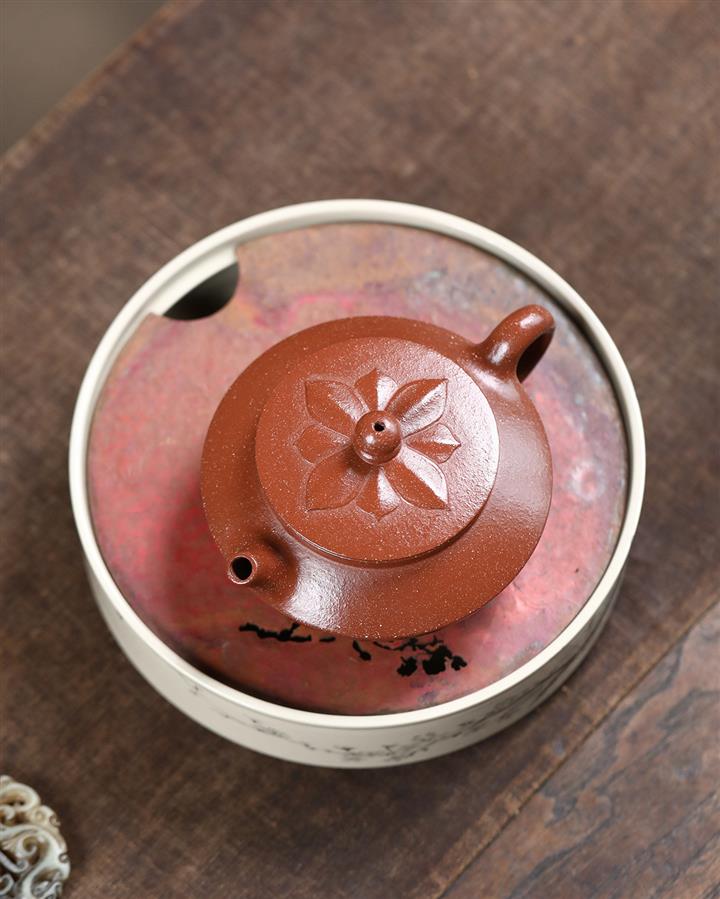 240cc原礦大紅袍彩繪花鳥虛扁茶壺POT8587