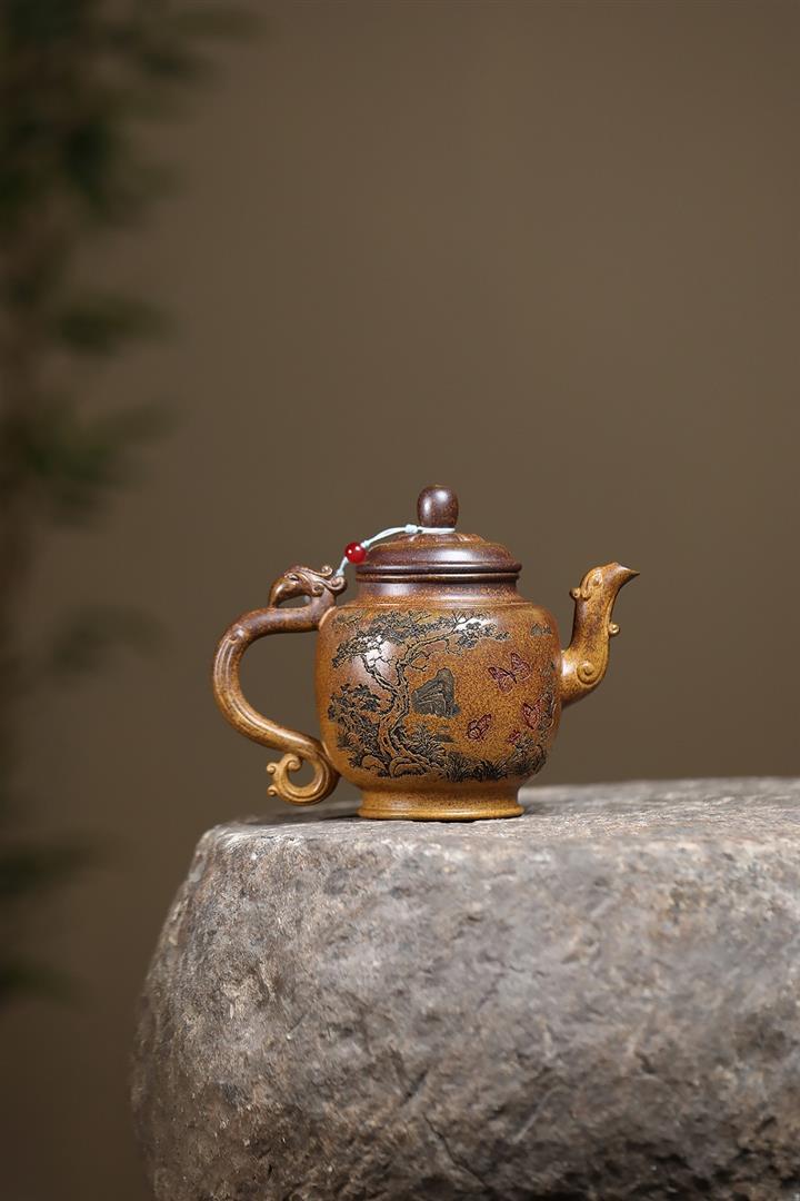原礦粗砂朱泥明式金葉茶壺POT7185