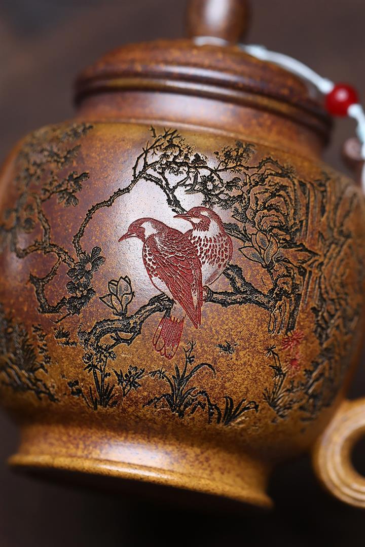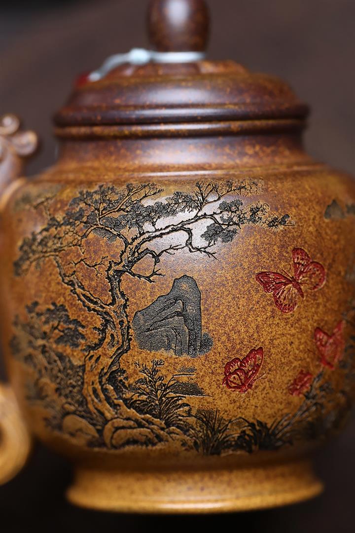 原礦粗砂朱泥金葉曼殊茶壺POT7183