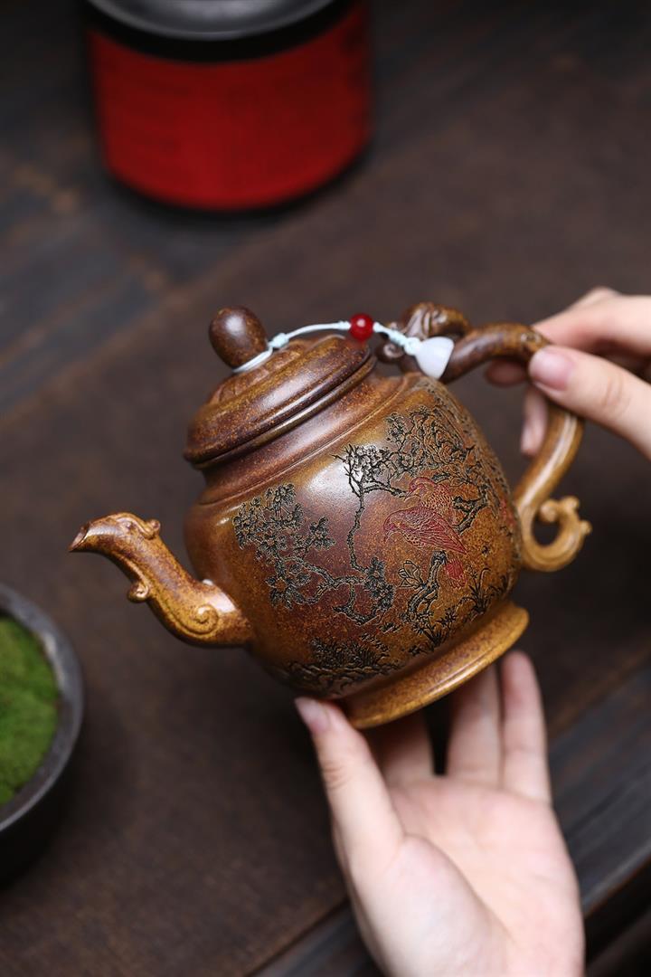 【作品介紹】此款壺形線條流暢,壺把,壺嘴,壺身壹氣呵成栩栩如生,是收藏把玩的好壺,泥料色澤古樸典雅,日久使用,漸露鋒芒,養成變化快,溫潤莊重,用其泡茶,使用的年代久,壺身就溫潤,泡出來的茶湯也就醇郁芳馨。