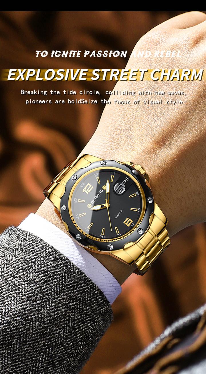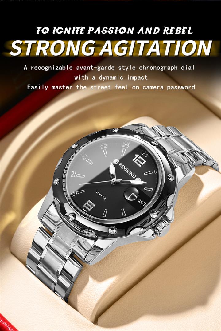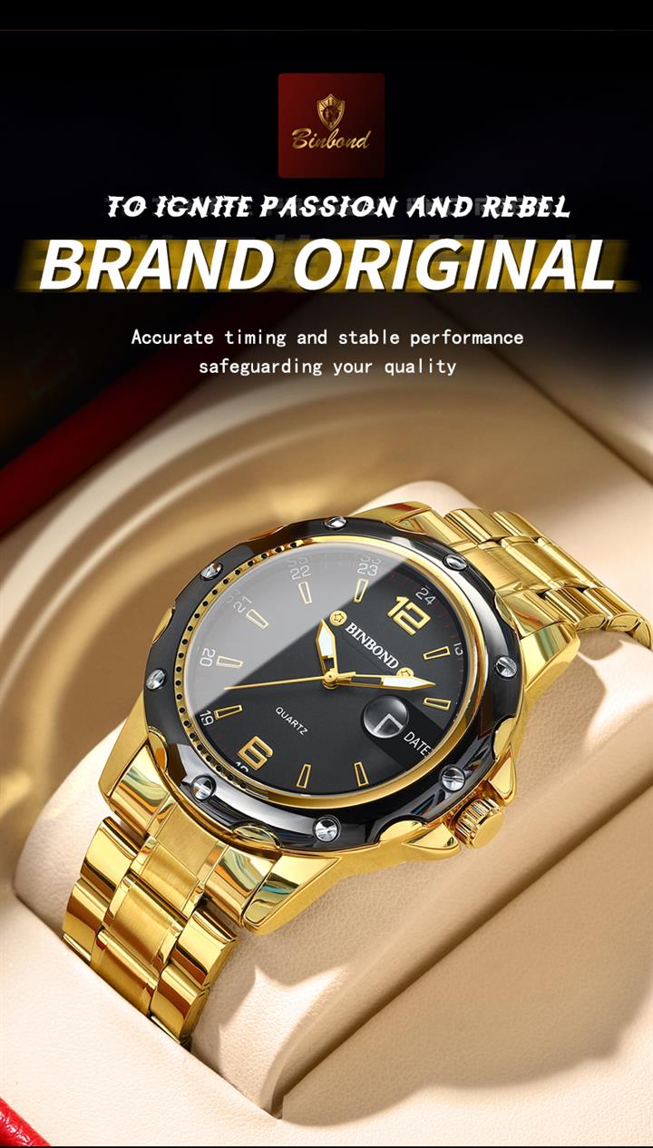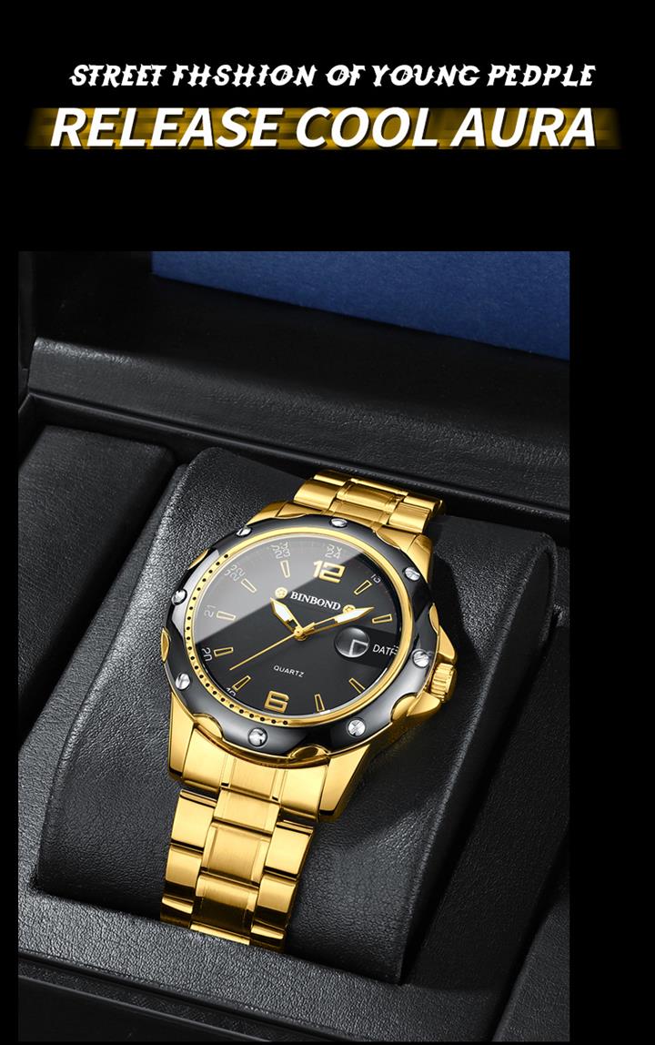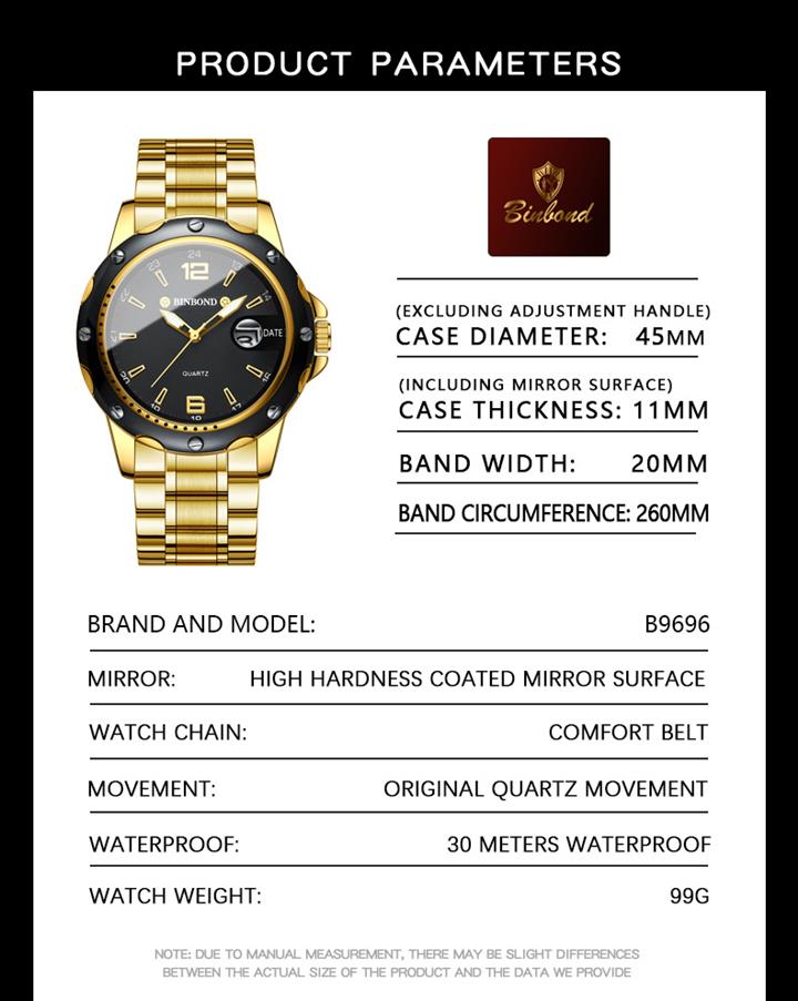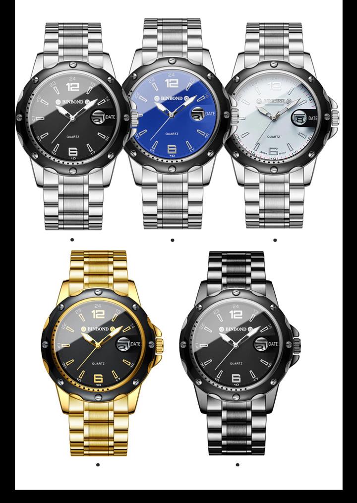 防水夜光雙日歷鑲鉆蝴蝶扣男表Wat2071