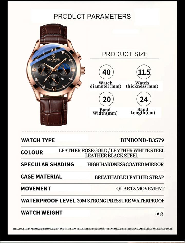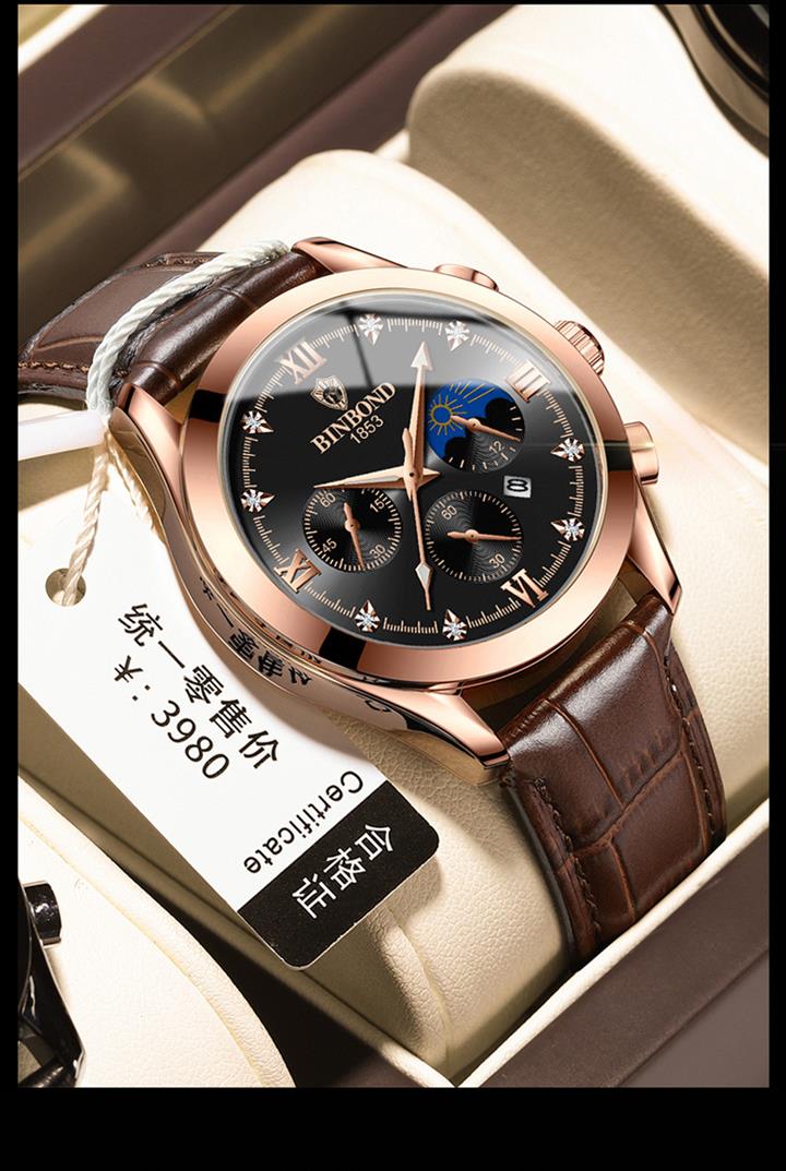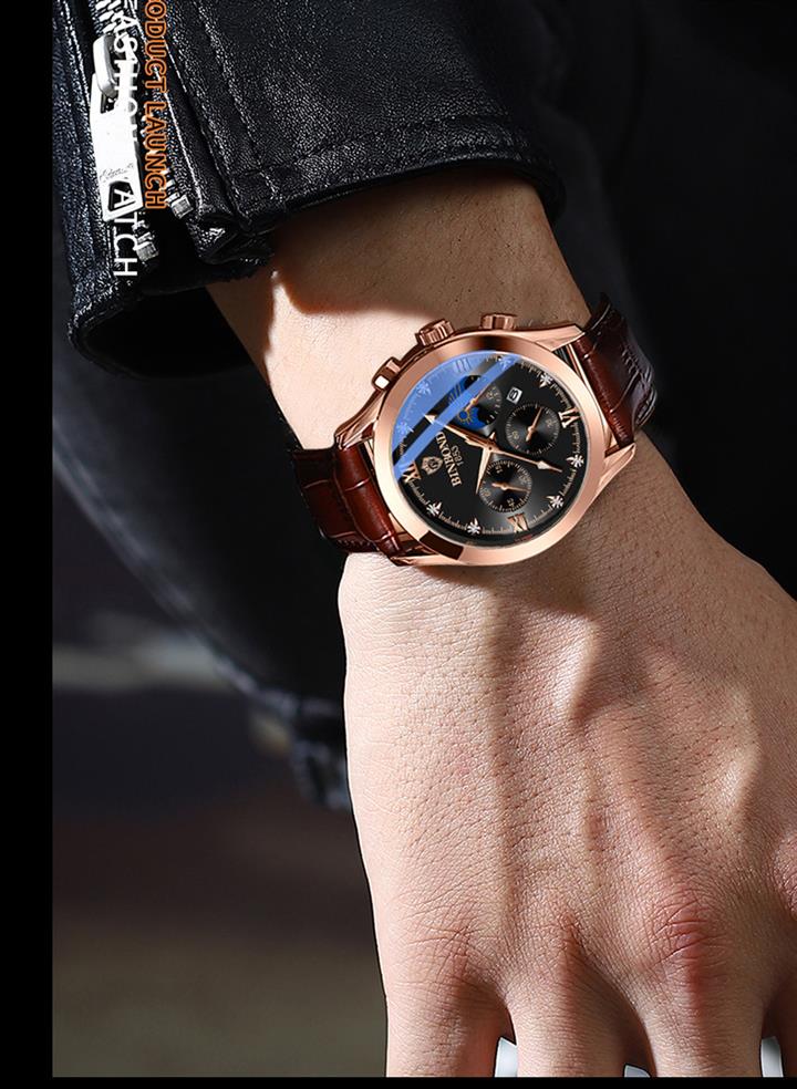 真皮高檔男士手錶夜光商務休閒男錶Wat03