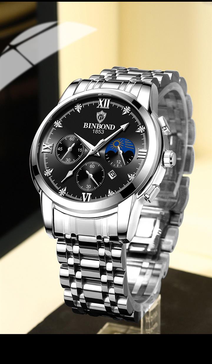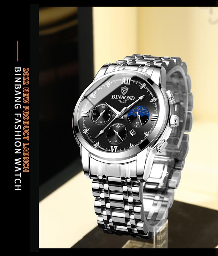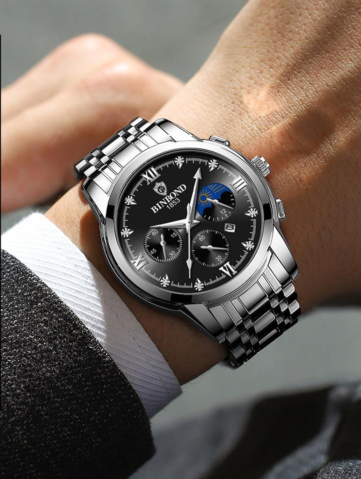 男士三眼錶盤鋼帶手錶 wat353