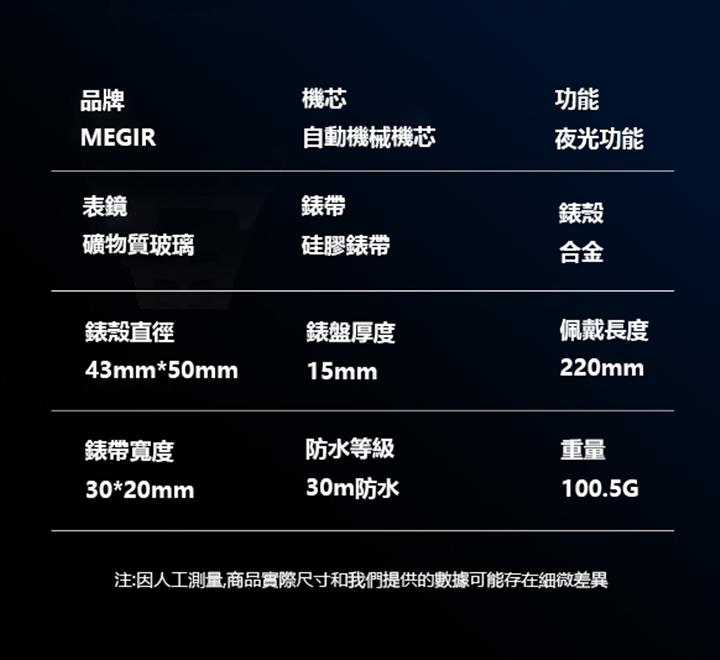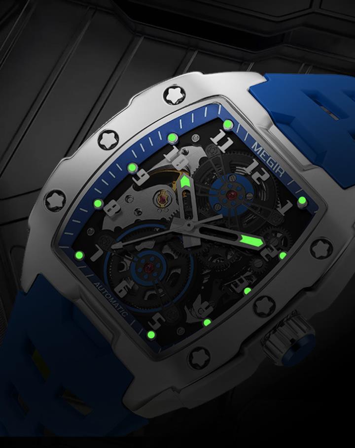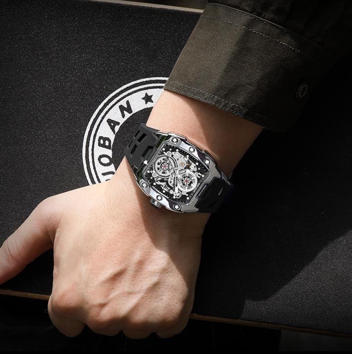 全自動機械表男表鏤空矽膠帶 Wat1881