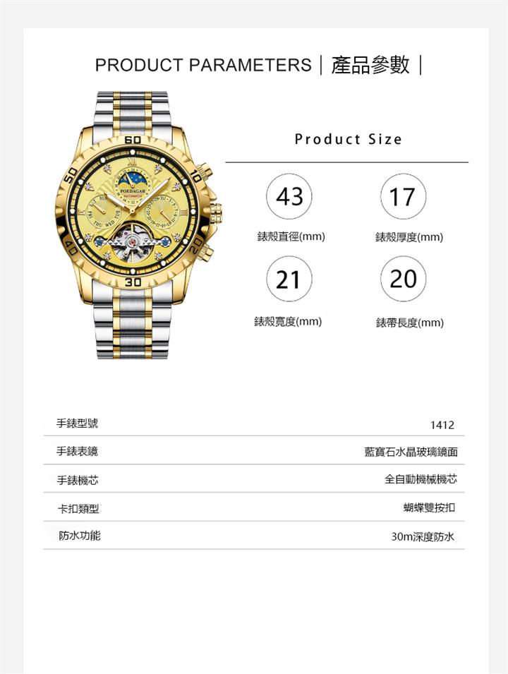 不銹鋼陀飛輪全自動男機械表 Wat1912