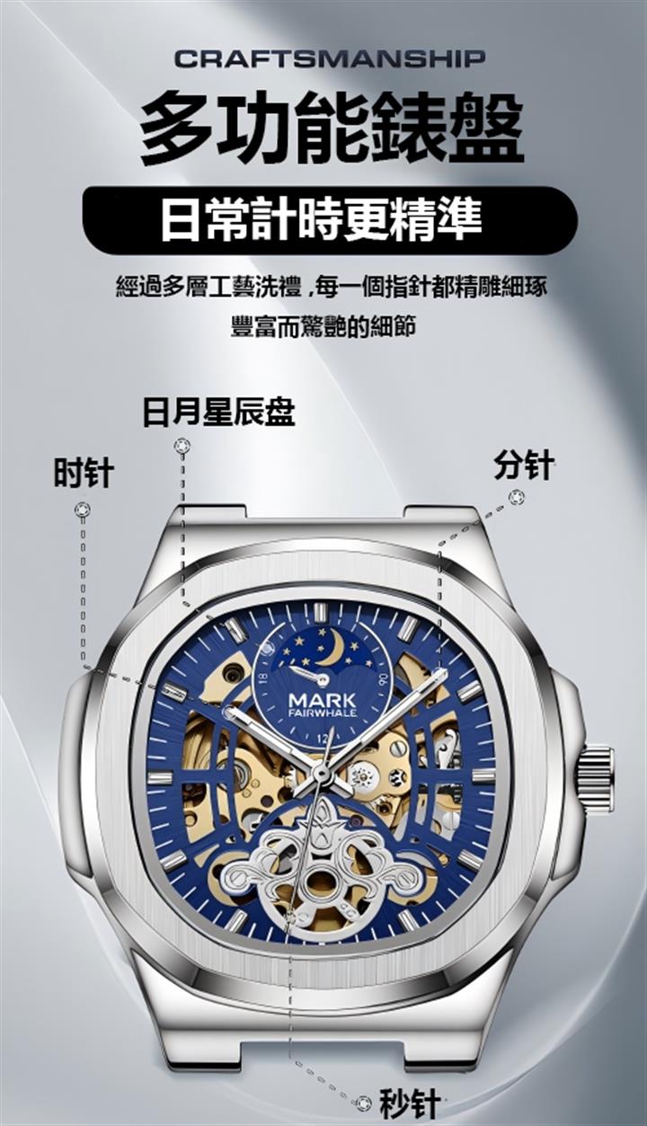 男士簡約鏤空機械表 wat470