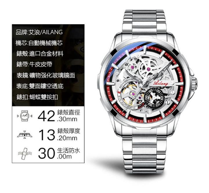 全自動鏤空男士機械腕錶 wat242