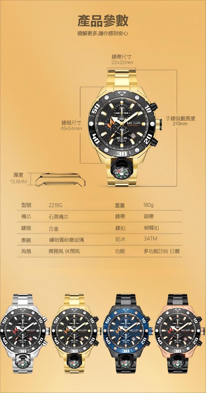 男士大表盤多功能石英表Wat2200