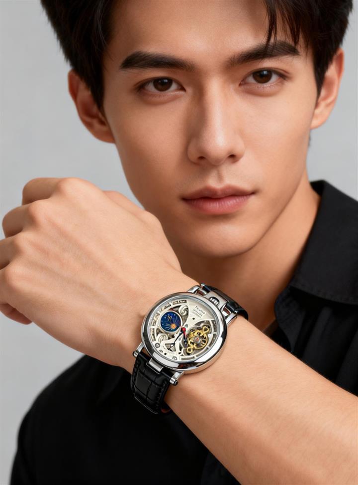 鏤空夜光蟲洞概念酒桶防水機械表wat1950