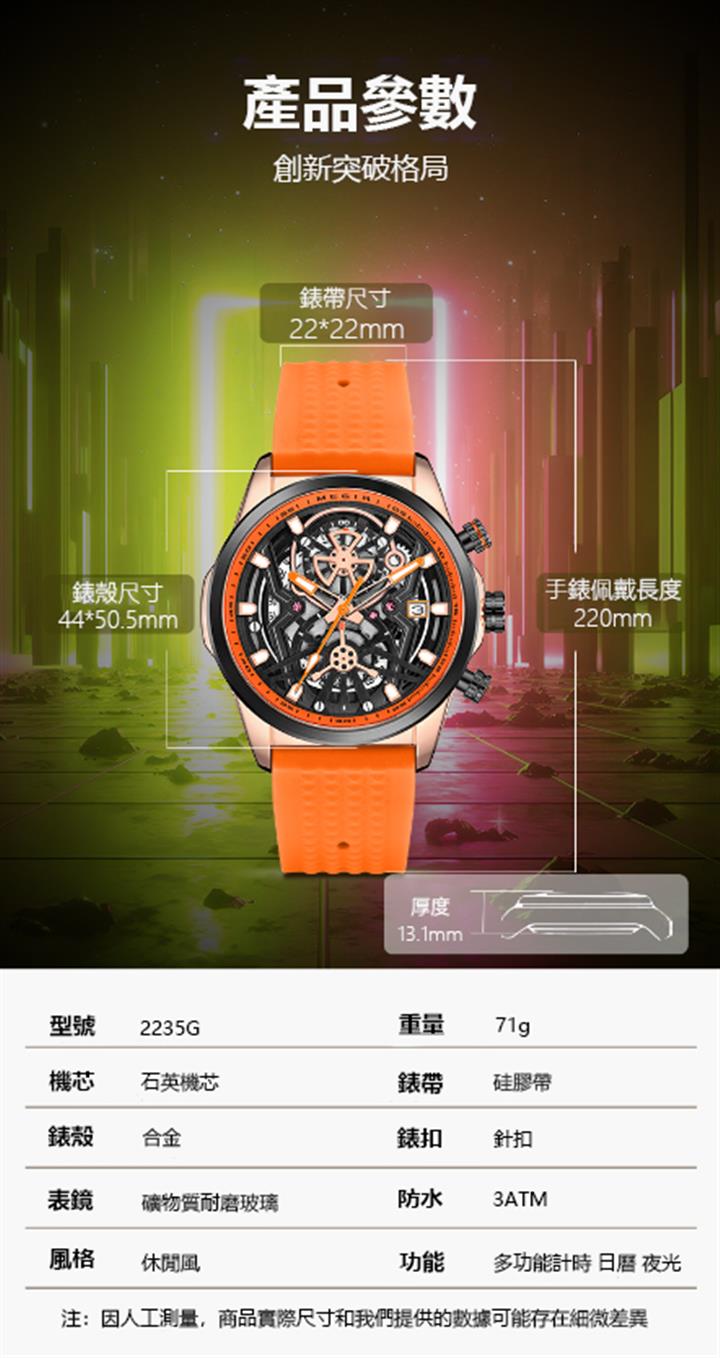 男士鏤空防水男錶 wat343