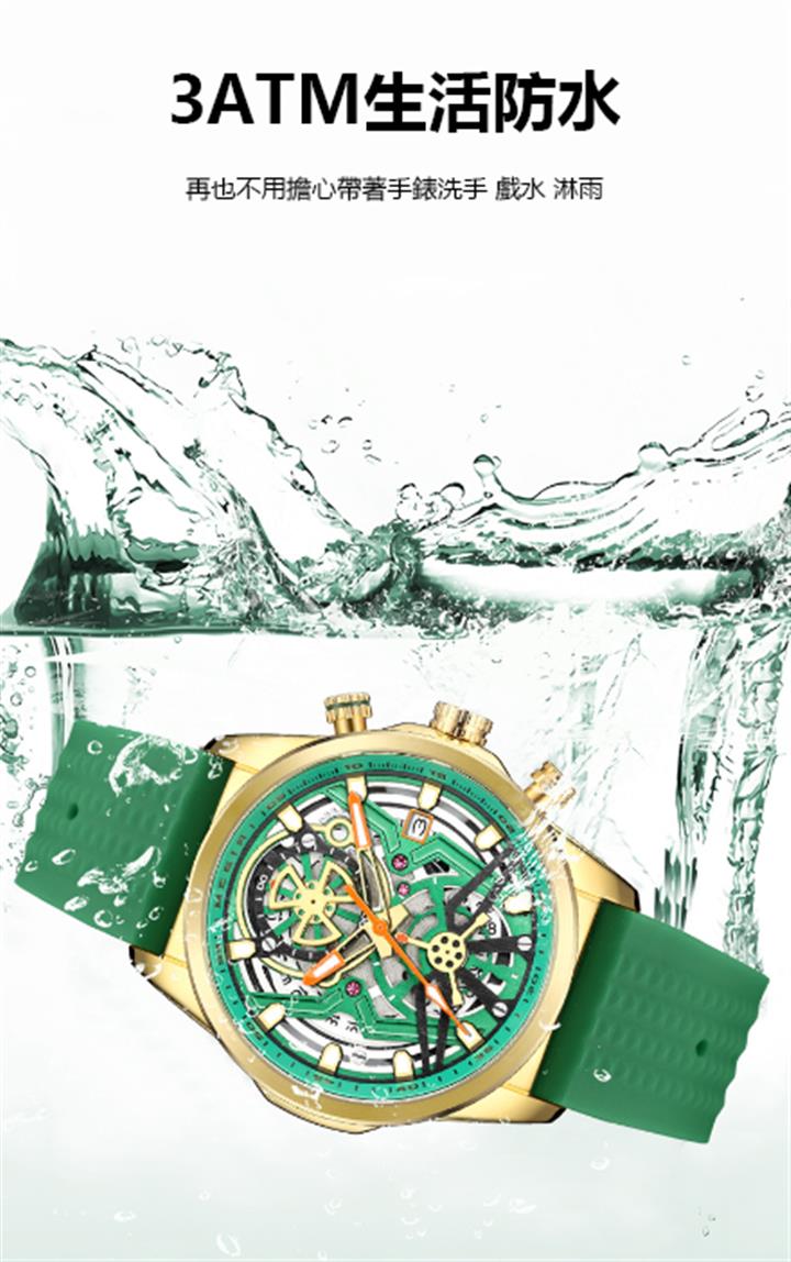 五針三盤男士防水機械錶 wat268