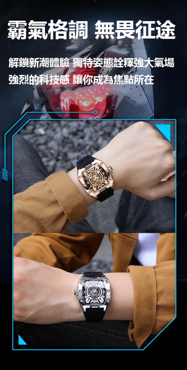 男士不鏽鋼藍色全機械手錶(+送星空女表)wat195