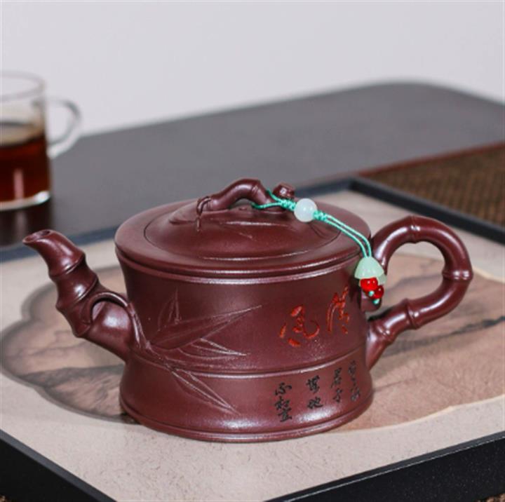 原礦龍骨金砂雙刀刻字炮嘴漢瓦茶壺POT6617
