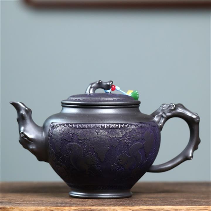 320cc原礦紅皮龍刻繪山水秦權泡茶壺POT8411