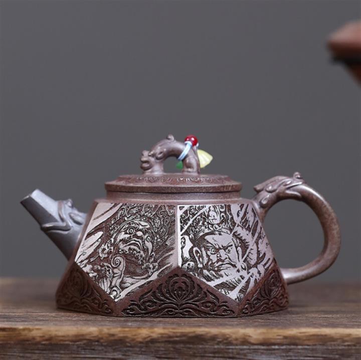 380cc段泥赤焰火雲燒滿刻秦權茶壺POT8202