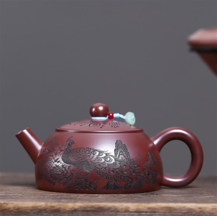 330cc原礦龍血砂孔雀振羽半月茶壺POT8196