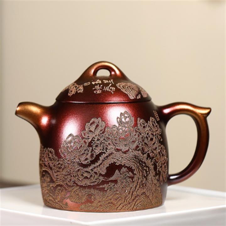 400cc原礦綠泥貝克燒金砂桃源秦權茶壺POT8474