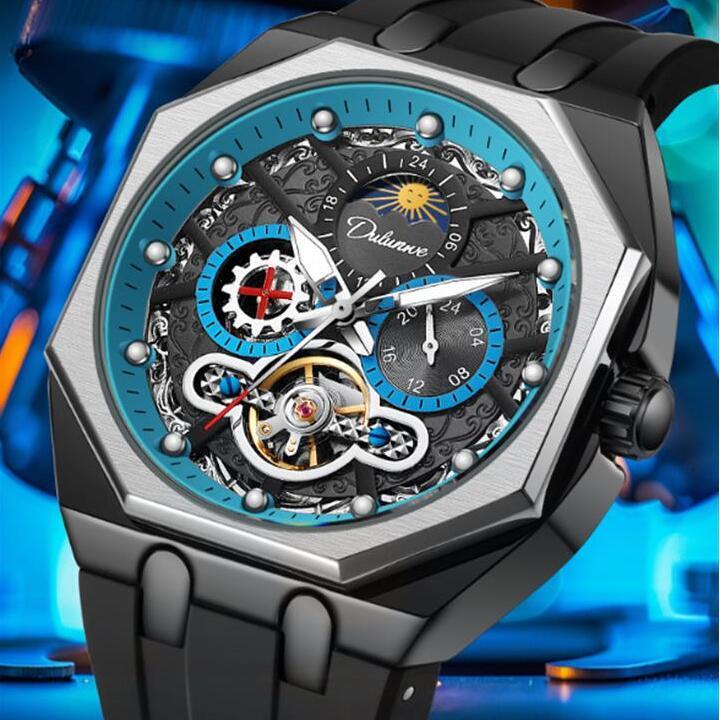 2021新款多功能運動風機械手錶男士防水夜光時尚透底行事曆機械表Wat1826