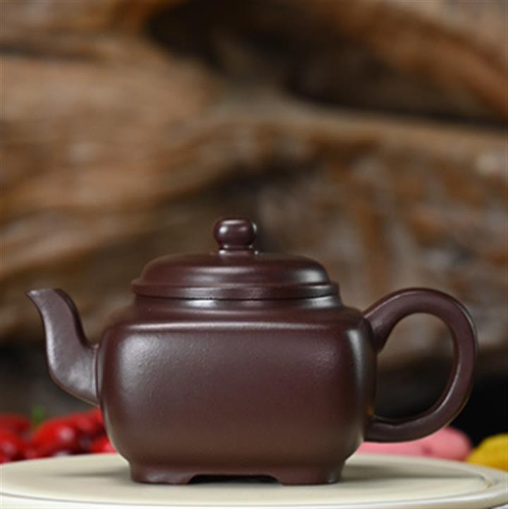 200cc原礦紫茄泥四方君玉光素泡茶壺POT9549