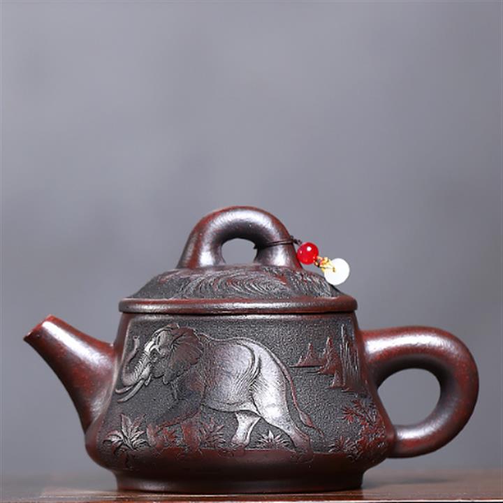 500cc原礦玄鐵石黃福象掇球泡茶壺POT9169
