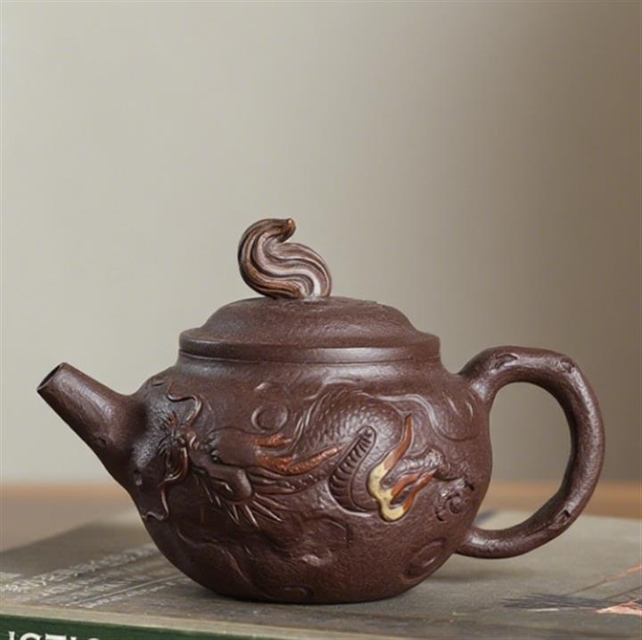250cc原礦老紫泥浮雕祥龍戲珠茶壺POT8129
