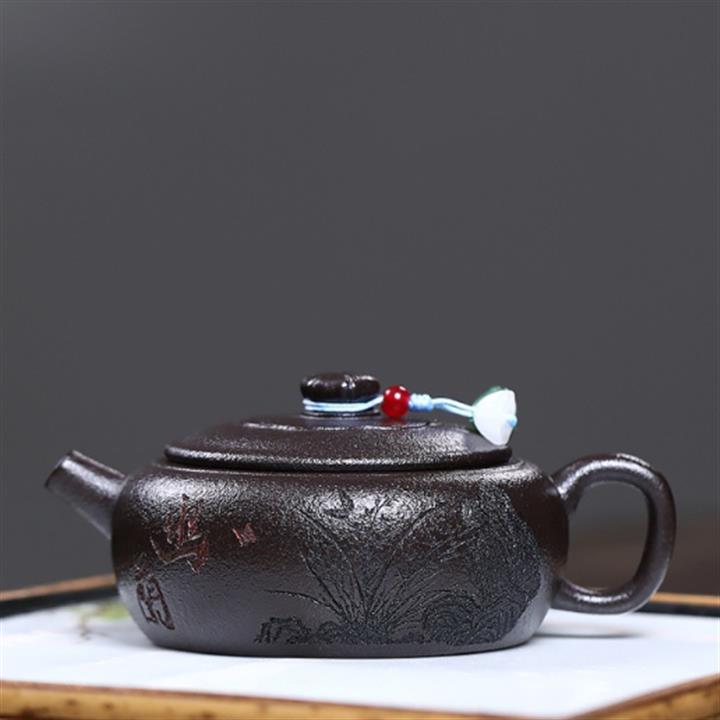150cc原礦石黃泥幽蘭扁柿茶壺POT8131