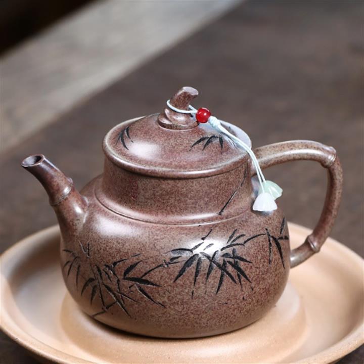 270cc原礦高溫沈香泥柴燒竹影茶壺POT8132