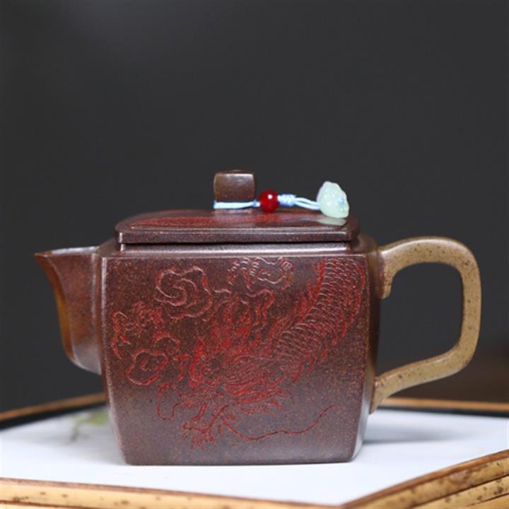 300cc原礦柴燒沈香泥雲龍四方壺POT8135