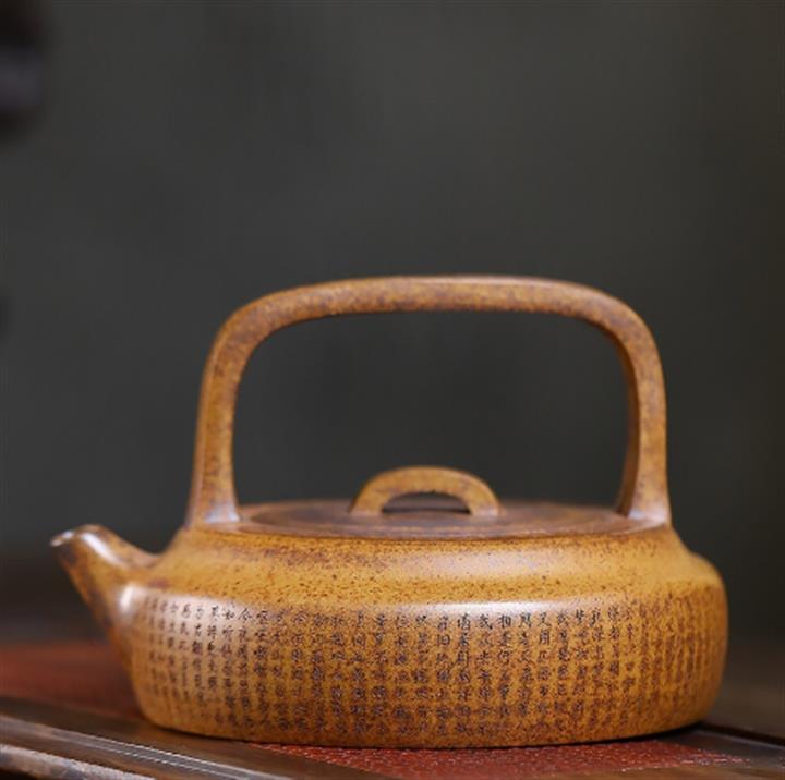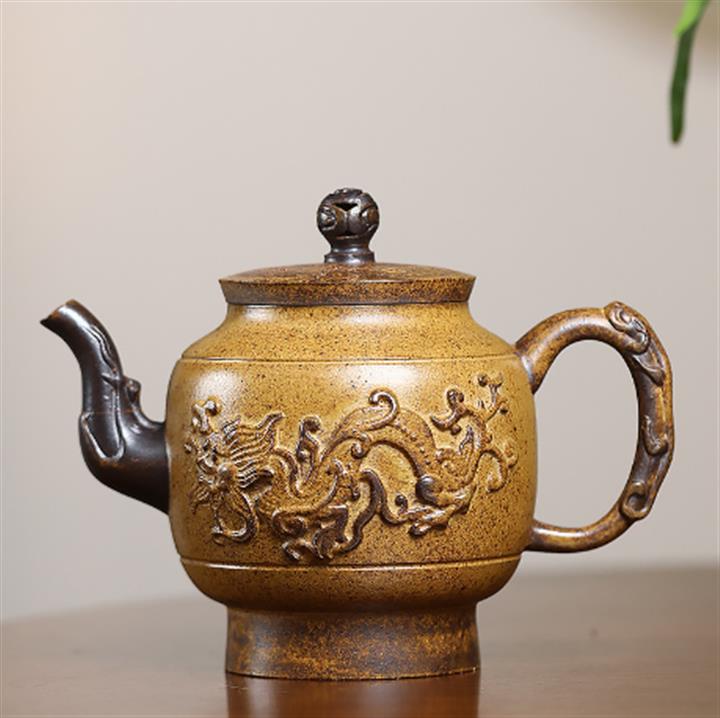 原礦石黃泥滿刻江南茶壺POT7408