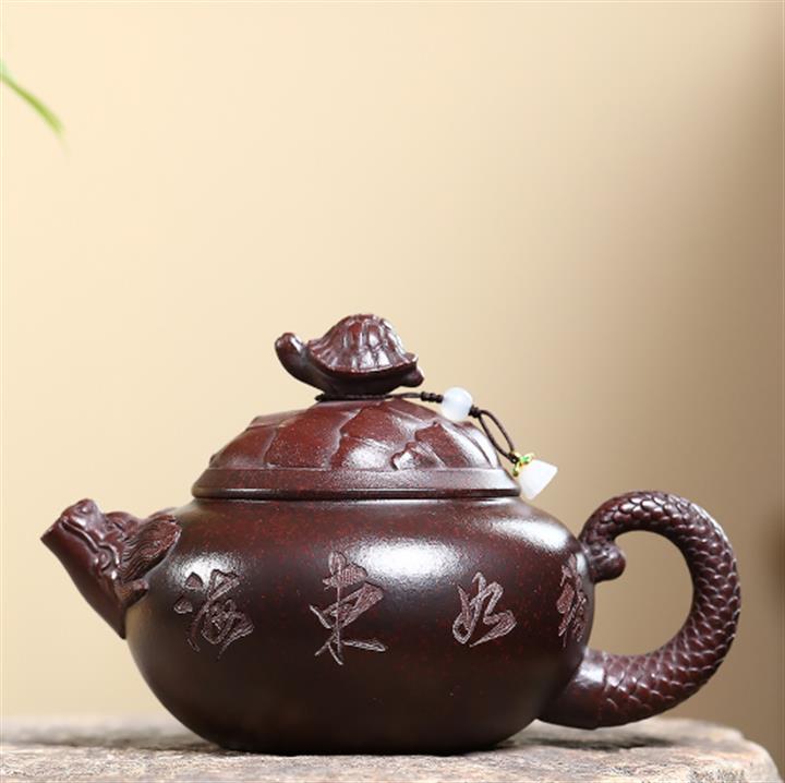 原礦紫泥龍獅三足紫砂壺POT5804