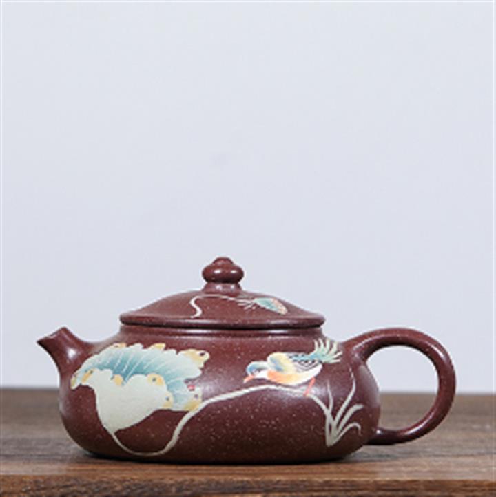 80cc原礦朱泥泥繪小漢瓦茶壺POT8548