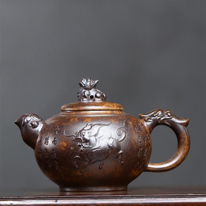 350cc原礦段泥高溫燒燒麒麟獻瑞茶壺POT8164