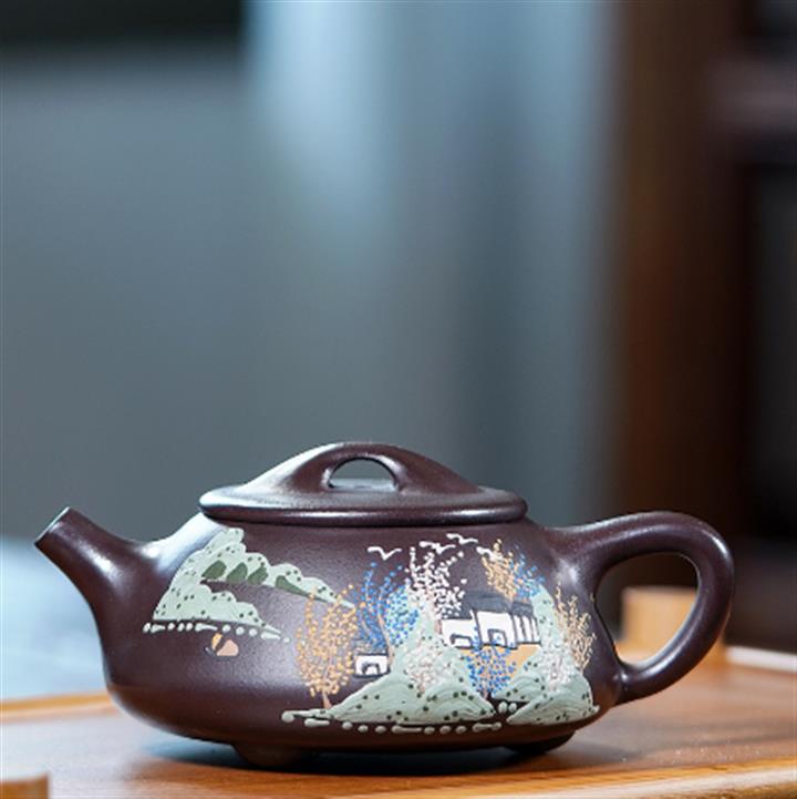 紫砂壺高石瓢刻繪半手工茶壺POT4002