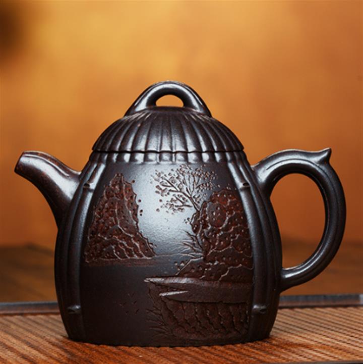 紫砂壺名家老紫泥刻繪周盤壺POT4009