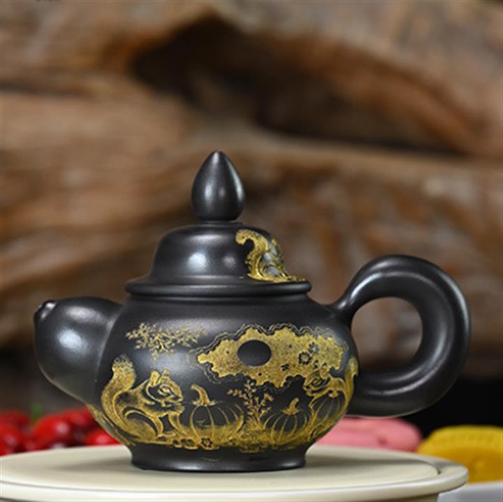 150cc原礦墨綠泥貼金君德泡茶壺POT9543
